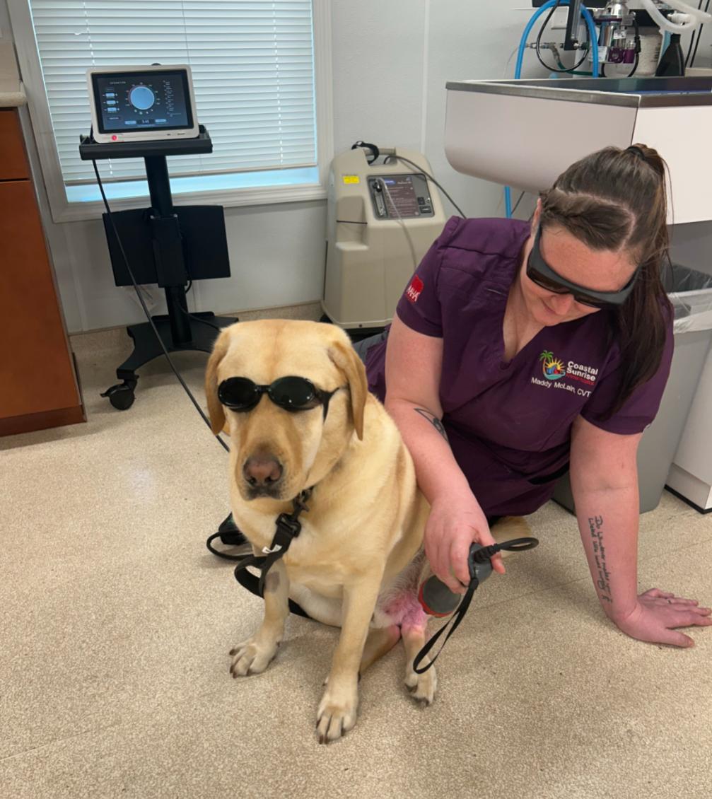 Coastal Sunrise Animal Hospital is pleased to offer the CTX-IQ laser from Companion Animal Health for our patients. The quality of your pet’s life can be improved with this proven innovation. The therapy laser can treat a wide variety of aches and pains, injuries, and diseases. Deep-penetrating photons from the laser influence cell chemistry in various beneficial ways. There is no sedation required, and the laser therapy experience is pleasant and comforting to your pet. Many pets will be relieved of their pain immediately following treatment.